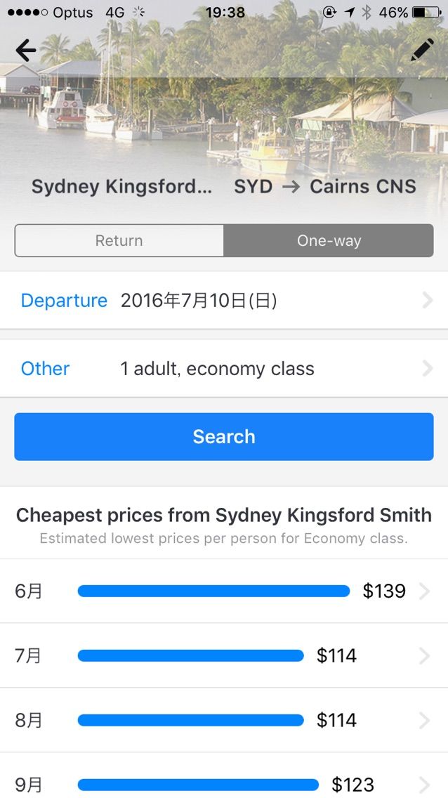 例えば、シドニーから東京へ行く場合、どの飛行機、どの日、どの時間帯